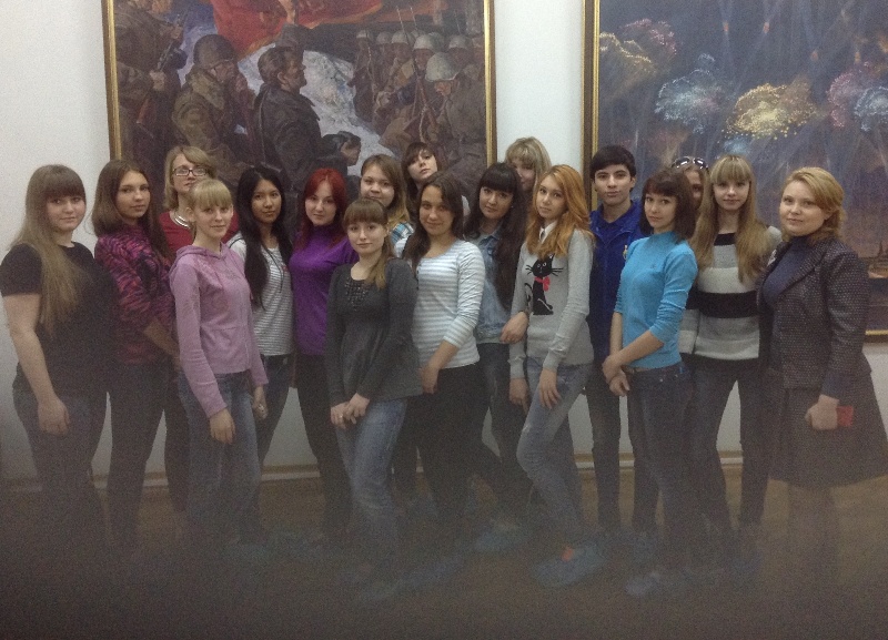 С большим интересом 5 мая студенты отделения экономики и права из группы ТЭ – 114 познакомились с натурными зарисовками и этюдами 1942-1945 гг. известнейших советских художников фронтового поколения: С.С. Боима, А.Ф. Пахомова, Е.А. Кибрика, Д.К. Мочальского, К.И. Финогенова. Большинство живописных работ были выполнены в послевоенные годы волгоградскими художниками-фронтовиками: А.И. Бородиным, А.П. Бурлаем, А. М. Егидисом, В.Я. Литвиновым, А.А. Прокопенко, Ф. И. Сухановым и др.