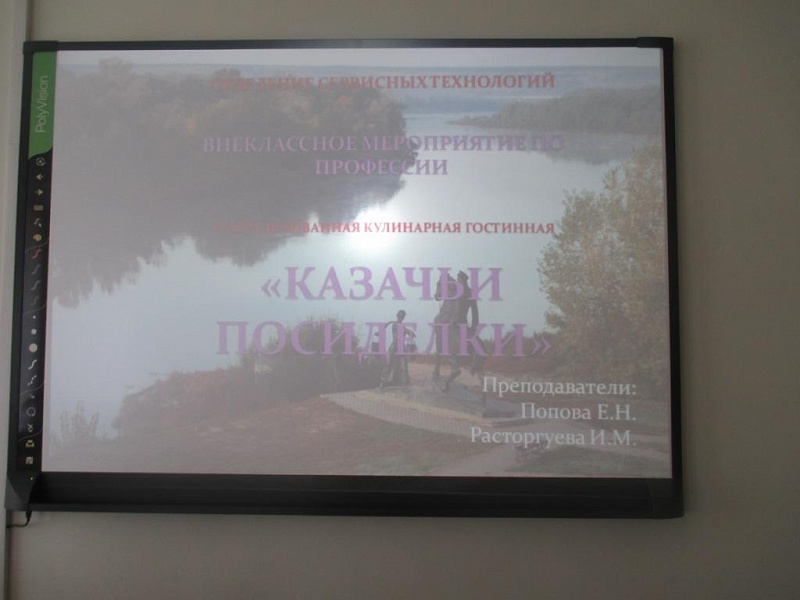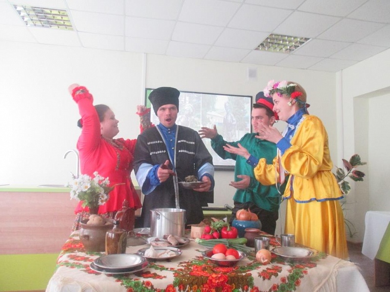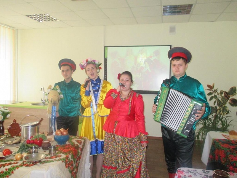 Перед студентами и гостями литературно-кулинарной гостиной «Казачьи посиделки» предстали нетленные сцены из романов М.А. Шолохова «Поднятая целина» и «Тихий Дон», обряды и традиции, быт и уклад русского казачества. Студенты побывали в импровизированной кулинарной гостиной – казачьем курене, приняли участие в казачьих посиделках с песнями, частушками и танцами, в которых выразилось все величие казачьего духа, народный юмор и веселье; познакомились с блюдами старинной казачьей кухней, посудой для ее приготовления, обстановкой в казачьей горнице-избе.