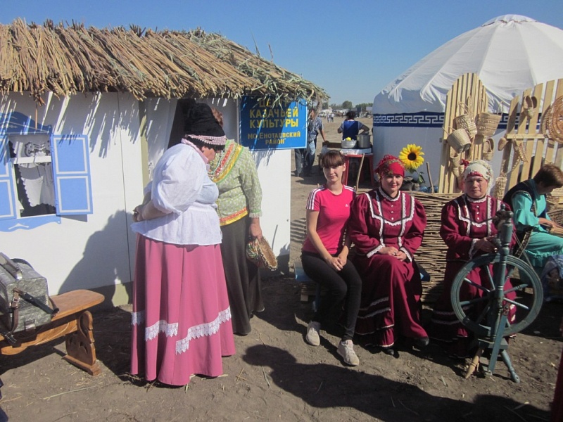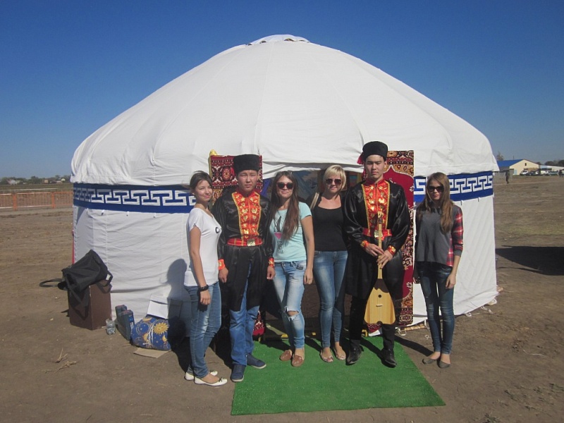 Студенты специальности «Туризм» и «Гостиничный сервис» проводили мастер-классы по проведению экскурсий по этнодеревне, которая была представлена русской избой, казачьим куренем, татарской, ногайской и казахской юртами.