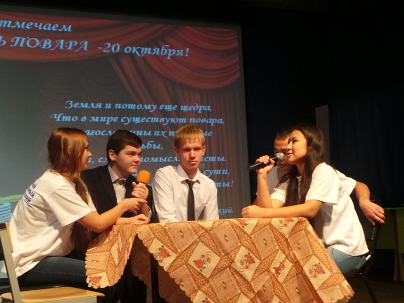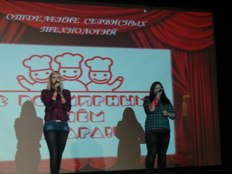 Собравшимся в зале гостям, студентам и преподавателям запомнились: выступление команды КВН (гр. ТП 282); веселая сценка о поваре и приготовлении им фирменного блюда (гр. ТП 181); кулинарное дефиле – парад блюд (студенты гр. ТП 382 и ТП 482), прозвучавшие поздравления и музыкальные подарки от студентов отделения (гр. ТП 481 Донской А., Державиной Л.).