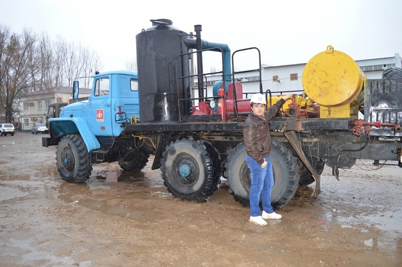 В ходе экскурсии наши ребята наблюдали за производственным процессом нарезки щелей в обсадной колонне ø146мм гидромеханическим щелевым перфоратором (ГМЩП) на глубине 620 метров для соединения внутреннего пространства обсадных труб с газоносным горизонтом. Ознакомились с устройством и техническими характеристиками цементировочного агрегата ЦА-320 и его назначением.