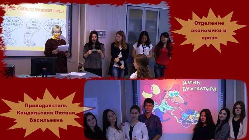 23 ноября 2015 года на отделении Экономики и права состоялся экономический КВН среди студентов специальности Экономика и бухгалтерский учет (по отраслям).Тема – естественно экономическая - «Азбука учета».