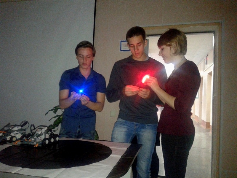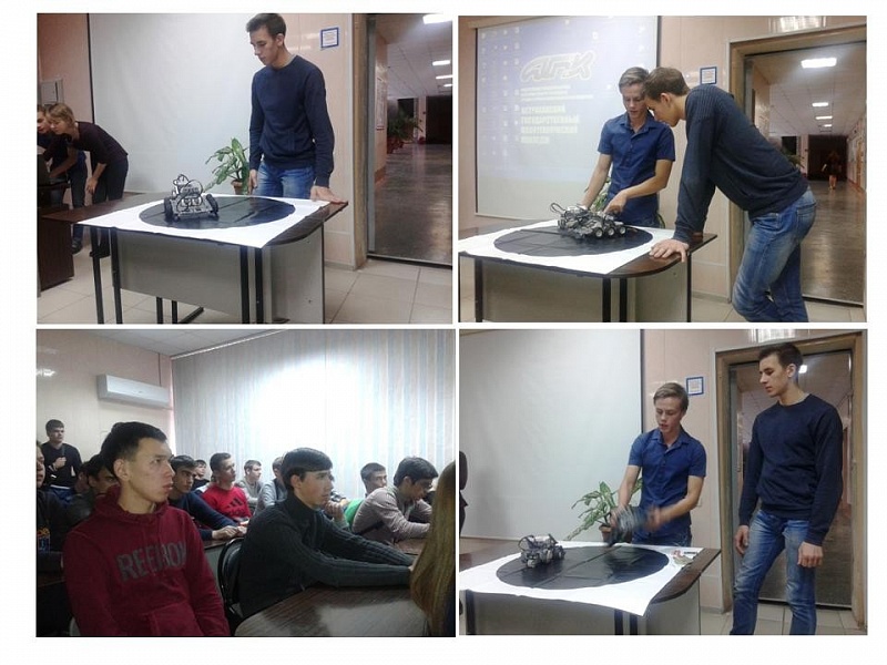 Студенты рассказали о проектах по изготовление робота, избегающего препятствия, робота, движущегося на свет, робота, выращивающего и срезающего цветы и о других интересных и занимательных проектах. Затем они продемонстрировали работу мобильных роботов – автоматических машин, в которых имеется движущееся шасси с автоматически управляемыми приводами. Ребята были очень увлечены своим выступлением и увлекли за собой и наших присутствующих студентов.