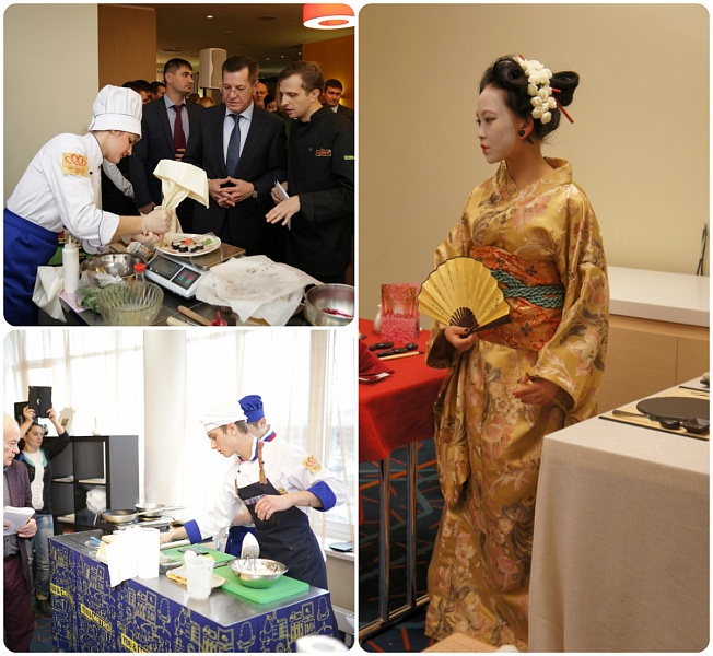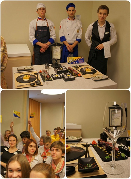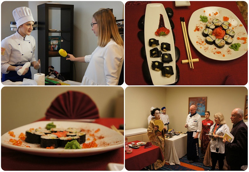 Участники приготовили роллы на четыре персоны, сервировали стол на две персоны, учитывая японскую тематику, остальные два оформленных блюда отнесли на дегустационный стол жюри.