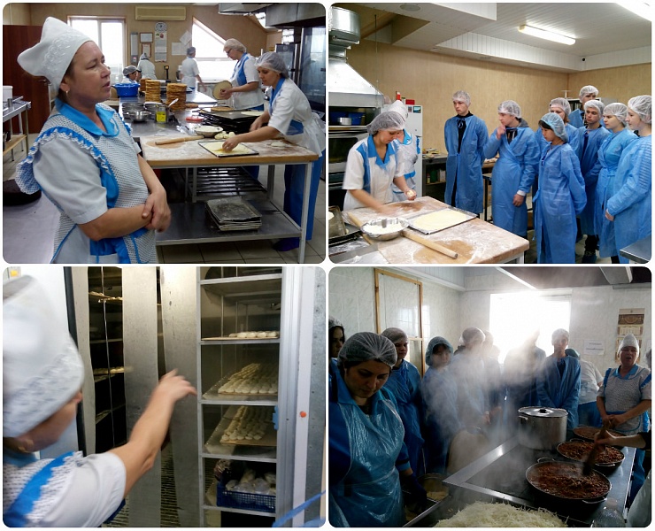 Студенты отделения сервисных технологий группы ТП-281 посетили комбинат общественного питания «МЕЛИЯ 999». В ходе экскурсии они познакомились с особенностями производства полуфабрикатов высокой степени готовности – пельменей, колтунов рыбных, вареников в ассортименте. А также узнали специфику приготовления кондитерских и хлебобулочных изделий – пирогов татарских сладких, мясных, грибных; треугольников, хачапури в ассортименте, чак-чак, блинов и тортов.
