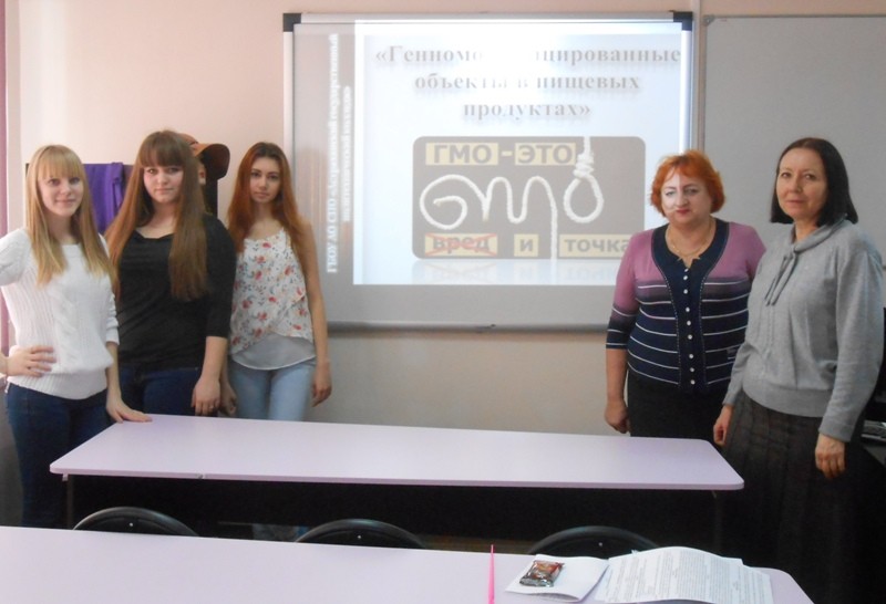 Студенты группы подготовили презентации, ознакомились с историей открытия ГМО, рассказали как регулируется производство и продажа ГМО в мире, с какой целью создаются генномодифицированные продукты, как можно определить ГМО в продуктах.