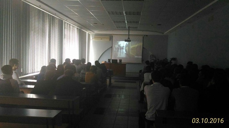 Студентам было рассказано о безопасности на дорогах. Инспектор ГИБДД привела статистику дорожных происшествий в нашем городе с участием детей, и не только. Был показан фильм о наиболее распространённых ошибках поведения участников дорожного движения - пешеходов и водителей.
