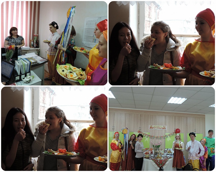 Поэтому студенты колледжа и преподаватели активно включилась в «блиннопоедательную» работу, чтобы «жизнь весь год была, как у маслена блина». Песнями, танцами, задорными частушками сопровождалось угощение от групп специальности «Технология продукции общественного питания», умело организованное преподавателем спец. дисциплин Е.Н. Поповой.