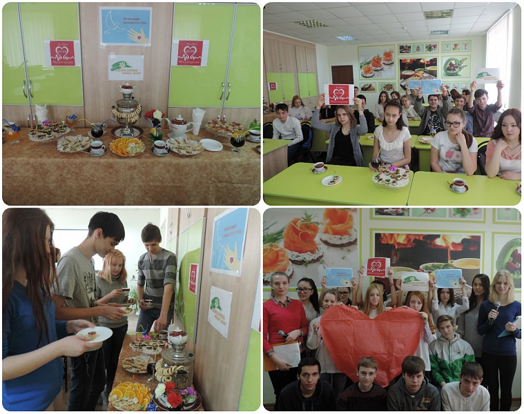 На отделении сервисных технологий состоялось открытое внеклассное мероприятие «Кулинарный флеш-моб» – акция милосердия «2016-й – Святой год милосердия», подготовленный студентами специальности 43.02.10 «Технология продукции общественного питания» и преподавателем спец. дисциплин Поповой Е.Н.