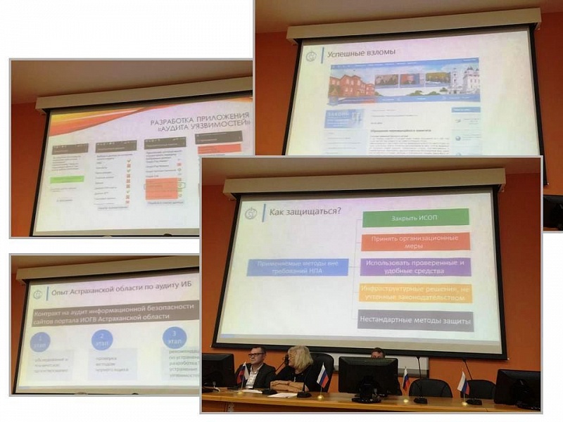 Также в рамках семинара выступили начальник Управления информационных систем и технологий, доцент кафедры «Информационная безопасность» АГТУ Кучин Иван Юрьевич с темой «Проблемы информационной безопасности при использовании мобильных устройств (на платформе Android)»; Качан Александр Олегович с темой «Банк данных угроз безопасности информации и уязвимостей программного обеспечения ФСТЭК России» (Управление ФСТЭК России по Южному и Северо-Кавказскому федеральным округам) , и.о. директора ГБУ АО «Инфраструктурный центр электронного правительства» Косарев Валентин Сергеевич с докладом «Защита информационных систем общего пользования. Информационная безопасность в электронном правительстве Астраханской области».