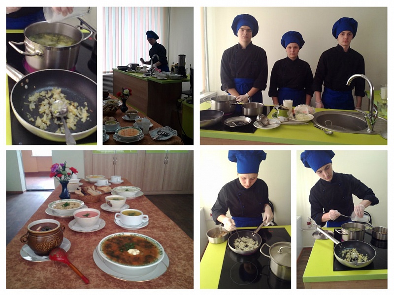 На отделении СТ прошел мастер-класс «Классические и современные технологии приготовления и подачи супов». Мероприятие, подготовленное преподавателем специальных дисциплин Поповой Е.А., состояло из нескольких частей (этапов): мастер-класс «Современные технологии приготовления супов-пюре»; видео-презентация: «Современные способы, приемы, технологии приготовления и варианты оформления супов»; выставка-дегустация «Современные диетические супы быстрого приготовления».
