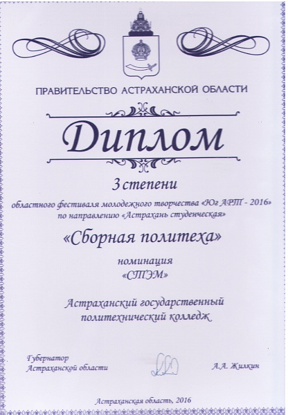 Поздравляем студентов Астраханского государственного политехнического колледжа с победой в направлении «Астрахань студенческая»: