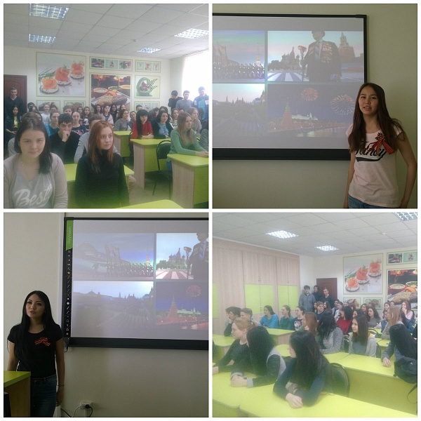 На отделении сервисных технологий кураторами групп первых и вторых курсов были проведены кураторские часы и открытые внеклассные мероприятия, посвященные 71-й годовщине Победы в Великой Отечественной войне. Студенты группы ООП-219 подготовили литературно-музыкальную композицию «Их подвиг бессмертен», на которой прозвучали стихотворения К. Симонова, А. Твардовского, А. Ахматовой.