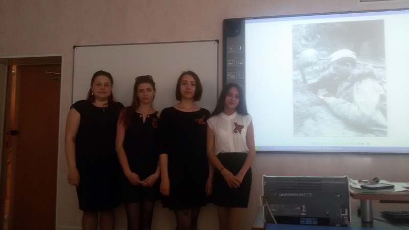 На отделении Информационных технологий и дизайна прошел цикл классных часов посвященных празднику Победы. Студенты группы ДН291 совместно с куратором группы Никитиной В.В. рассказали о войне глазами женщины, матери… Война - тяжелое испытание для мужчин, женщинам же самой природой, созданным для того, чтобы дарить жизнь – испытание войной было вдвойне тяжелее. Несколько историй из жизни женщин на войне. Рассказ о горьких потерях, разочарованиях и вместе с тем о необычайной силе духа советских женщин был посвящен классный час. Отрывки из фильма «Помни имя свое..» напомнили нам как скоротечно и хрупко человеческое счастье. Как важно помнить и понимать какой ценой нам досталась возможность жить в мирное время…