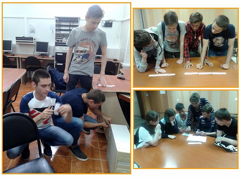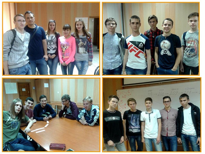 Суть: каждая команда состояла из 5 участников, которые расположились в 5 аудиториях главного корпуса. Перед началом марафона всем командам объяснили правила и этапы игры. На первом этапе (ауд.107) командам предстояло разгадать непростую криптограмму. Только выполнив задание этапа участник мог получить часть итогового кода и передать "эстафетную палочку" своему товарищу по команде. На втором этапе (ауд.201) участникам досталось интересное и , казалось бы, легкое задание - сыграть в игру "Пятнашки" с компьютером. Надо заметить, что студенты с легкостью выполнили это задание. Время выполнения - от 1 мин до 6 минут (преподавателям следует задуматься над тем, чем занимаются студенты на уроках, потому как некоторые из участников тренировались именно в это время). На третьем этапе (ауд.209) студентам предложили выполнить поиск информации в Интернет. Им следовало по обрывкам надписей обозначить известные поисковые системы, а также по изображению найти автора картины, указать ее название и год создания. Помимо этой информации студентам необходимо было указать: Что находится в верхнем углу картины? Задание вызвало определенные трудности, особенно у студентов младших курсов (гр.ИС, КС) и дизайнеров. Четвертый этап (ауд.221)был особо привлекательным для студентов специальностей группы "Информатика и вычислительная техника", т.к. представлял собой задание по сборке персонального компьютера.И хотя по правилам игры собирать компьютер должен был один участник, подключилась вся команда, т.к. сборка-то была на скорость! На пятом этапе (ауд.210) участники рисовали в графическом редакторе MS Paint. Задание было взято из олимпиадных примеров Всероссийского конкурса по информатике и вызвало определенные затруднения у ребят. Задание называлось "Загадочный рисунок", т.е. студенты не знали, что в итоге должно было получиться. Интересно!. На заключительном этапе (ауд.107) все снова собрались в аудитории, где проходил старт конкурса. Там надо было собрать все коды, имеющиеся у членов команды и собрать из них слово. Каждый листок с промежуточным кодом представлял собой слог этого слова. Нелегко пришлось командам! Но, всё же, разум взял верх!