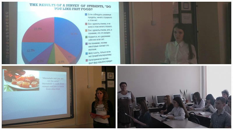 В группах первого курса прошла защита индивидуальных проектов по иностранному языку, которая наглядно показала уровень усвоения знаний студентов, практические умения составления текстов, грамматические и лексические навыки и умение представить данный проект. Проектная деятельность для обучающихся первых курсов в новинку, но, несмотря на это, были найдены интересные формы работы и подачи материала. Темы были выбраны согласно собственным вкусам и интересам, вот только некоторые из них: «Быстрая еда (Fast-food)»; «Достопримечательности Астрахани»; «Traditional food in Great Britain»; Holidays in great Britain.