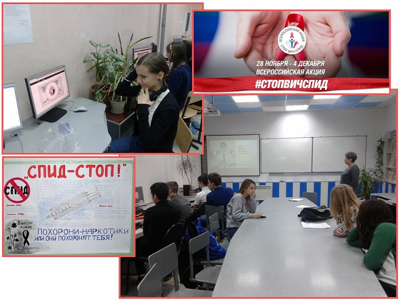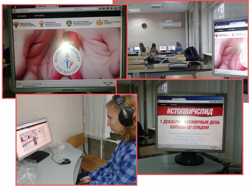 2 декабря во Всероссийском открытом уроке «День единых действий по информированию детей и молодежи против ВИЧ/СПИДА «Знание Ответственность Здоровье» приняли участие и студенты отделения информационных технологий и дизайна. Во всех компьютерных классах ровно в 13-00 час студенты подключились к глобальной сети Интернет и просмотрели видео материалы урока.