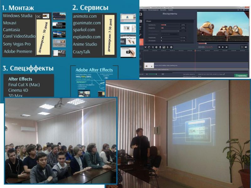 определитесь, над чем вы работаете: над созданием рекламных видеороликов, видеоуроков или занимаетесь обработкой отснятых видео. Подробная классификация программного обеспечения и рассказ о преимуществах и недостатках представляемого ПО, а также демонстрация возможностей тех или иных программ заставили присутствующих смотреть и слушать особенно внимательно. Облачные сервисы…Прекрасная возможность хранить большие и маленькие видео. Не следует забывать и о так популярных сегодня видеохостингах. Каковы перспективы мультимедиа? Это увидели студенты в удивительном видеоролике, продемонстрирующем необыкновенные превращения 3D-изображения. В заключении своего выступления Аминул Л.Б. поделилась со студентами полезными ссылками, включающими уроки по изучению необходимых для создания качественного видео программных продуктов. В течение всей презентации доклада Аминул Л.Б. показывала студентам свои разработки в той или иной программной среде.