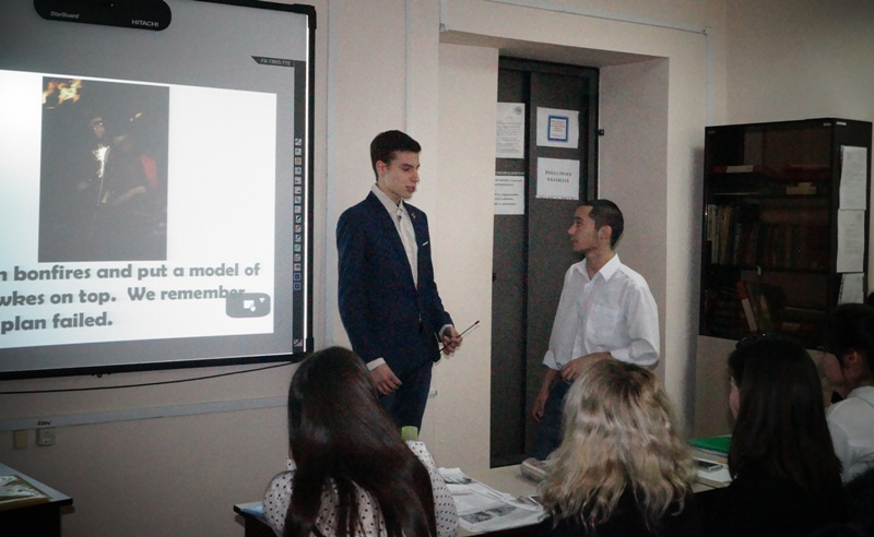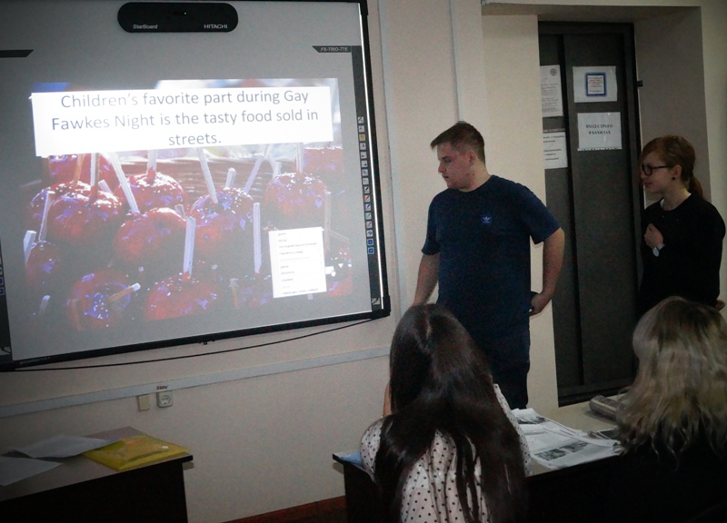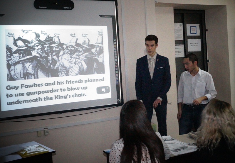 Студенты второго курса специальности «Туризм» перенесли аудиторию в Великобританию на Ночь Гая Фокса, разыграв сценку, поведавшую об истории заговора.