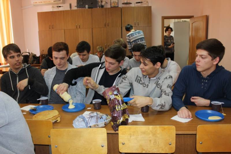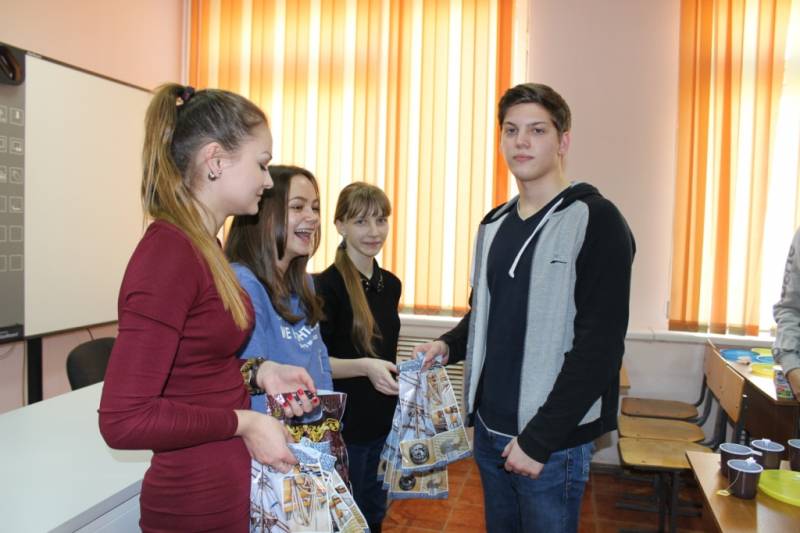 Интересно, творчески, задорно получилось поздравить парней группы АТП 220-9 Виктории Деревенской, Екатерине Лысиковой, Алене Стафеевой, Инне Носковой и Татьяне Наумовой. Девушки выступили в главных ролях поздравительного видеоролика, что вызвало много смеха, доброго обсуждения у сильной половины группы. Очередным сюрпризом девушек оказался выбор подарков к празднику. Завершением мероприятия стало чаепитие с блинами, т.к. праздник 23 февраля совпал с празднованием Масленицы. По мнению всех участников праздник удался, о чем свидетельствуют наши фотографии.