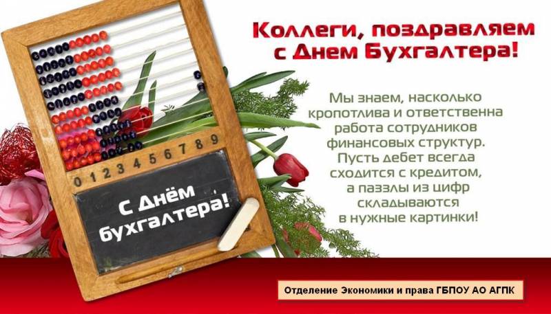 Поздравляем всех бухгалтеров и тех, кто только осваивает азы профессиональной грамотности с этим знаменательным днем и желаем в любой ситуации держать баланс, не терять из виду ни одной цифры и значения, работы без трудностей и ошибок, а жизни — с достатком и положительным сальдо.