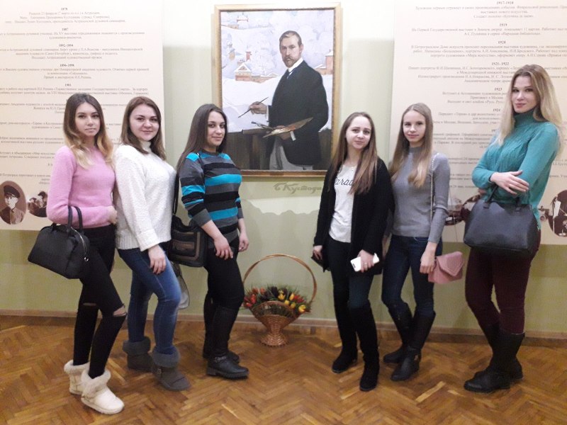 Студенты группы ТЭ-414 и ЭУ – 431 совместно с преподавателем Латышевой М. С. посетили Дом-музей Б. М. Кустодиева, где открылась выставка «Великая сила дарения», посвящённая важным событиям в культурной жизни Астрахани: 100-летию Астраханской картинной галереи имени П. М. Догадина и 140-летию со дня рождения известного русского художника Бориса Кустодиева. Уникальность выставки «Великая сила дарения» в том, что она полностью составлена из подарков самого художника, его семьи и их потомков.