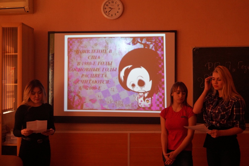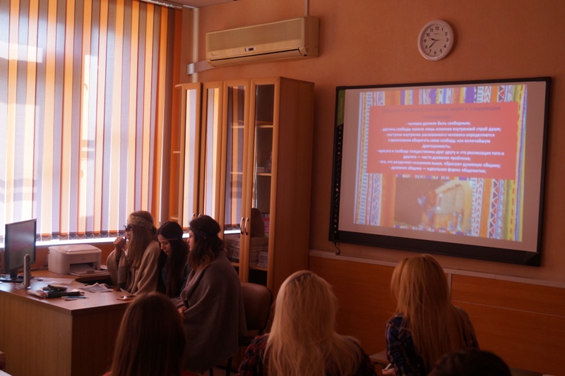 Объединившись в группы, студенты погрузились в изучение разных молодежных субкультур и ярко, красочно и разнообразно представили их: презентации, песни, сценки, танцы, соответствующие субкультуре макияж и атрибутика, был даже совершен юмористический обряд посвящения в хиппи.