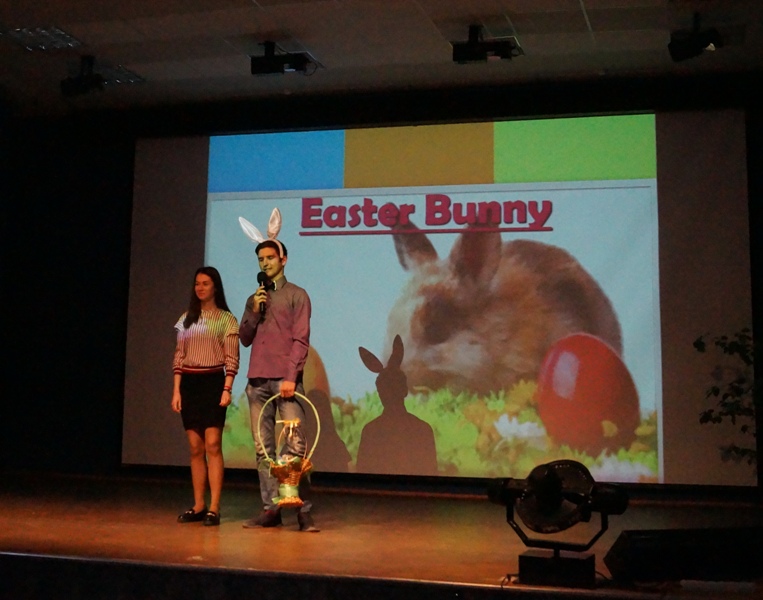 В исполнении студентки 1 курса группы ТЭ-114 Гандзий Екатериной прозвучала песня «Близкие люди». Великолепно роль Пасхального кролика, исполнил студент 2 курса группы ТЭ-214 Осипов Михаил.