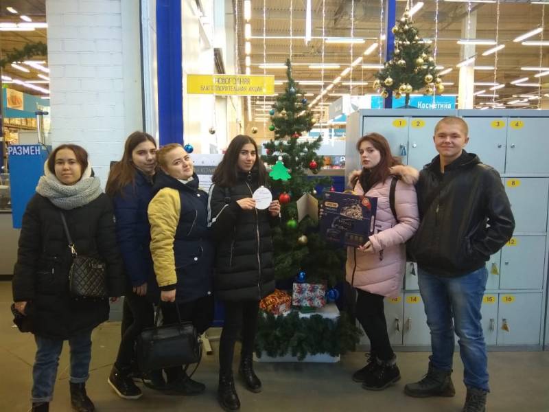 Студенты групп ПК-181 и ООП-219 смогли выступить в роли Деда Мороза и помочь осуществить новогодние желания воспитанников государственных детских домов и детских специальных учреждений. Открытки с пожеланиями подарков были размещены на новогодних ёлках, установленных в гипермаркетах «Лента».