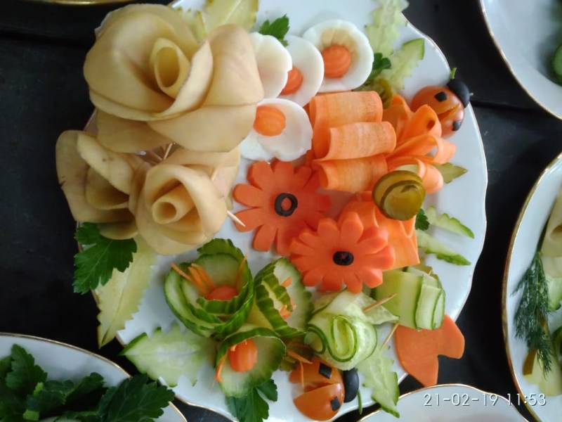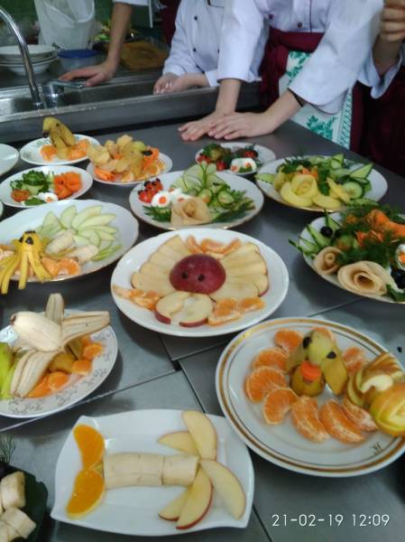 Студенты отделения сервисных технологий группы ПК-281, ПК-282 под руководством Латышевой Н.И. и Умеровой Т.А., провели мероприятие, приуроченную к празднованию Дня Защитника Отечества. Подготовка праздничного стола к 23 февраля была очень насыщенной и интересной. Разнообразные фруктовые и овощные композиции выполненные в технике Карвинг, поразили всех своей оригинальностью исполнения!
