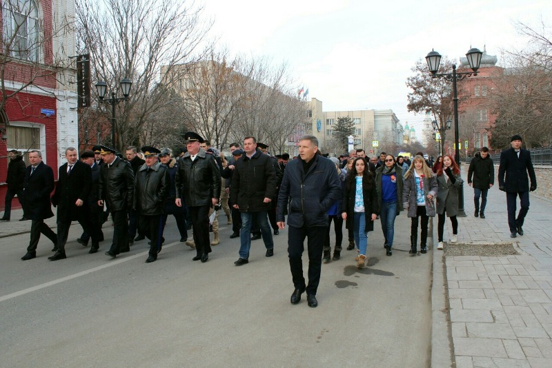 В мероприятии приняли участие врио Губернатора Астраханской области С. П. Морозов, глава МО «Город Астрахань» А. В. Губанова, а также депутаты областной и городской думы, военнослужащие астраханского гарнизона, представители казачества, ветеранских и молодежных организаций, среди которых были и представители астраханского движения "Волонтеры Победы". Одной из активных участниц движения является студентка гр.ТЭ 214 В.Тельбухова.