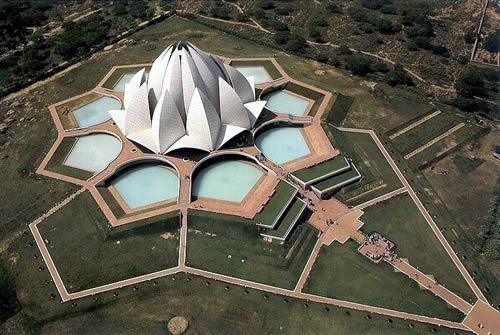 5. Храм Лотоса - главный храм религии Бахаи в Индии и сопредельных странах, построенный в 1986 году, архитектором - Сахба, Фариборз. Расположен в городе Нью-Дели — столице Индии. Огромное здание из белоснежного пентелийского мрамора в форме распускающегося цветка лотоса с 45 листьями и био-вентиляцией. Храм Лотоса выигрывал несколько архитектурных наград и был упомянут во множестве газетных и журнальных статей.
