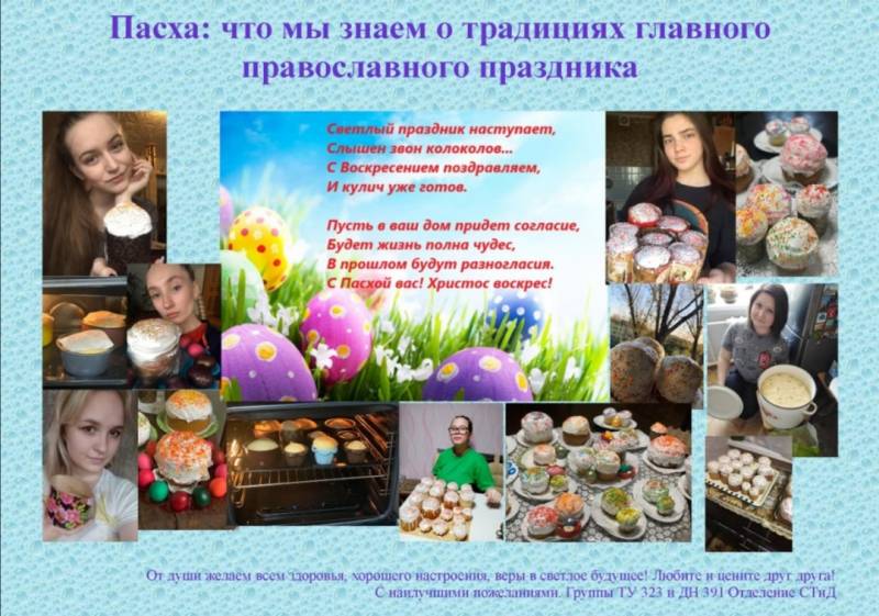 Студенты групп ТУ-323 и ДН391 отделения сервисных технологий и дизайна совместно с куратором Лариной Т.А. от всей души желают всем здоровья, хорошего настроения, веры в светлое будущее. Любите и цените друг друга!