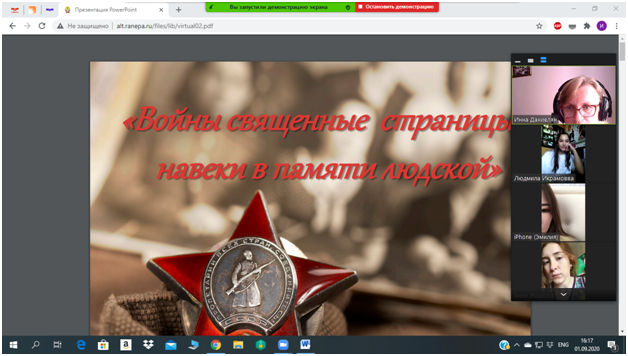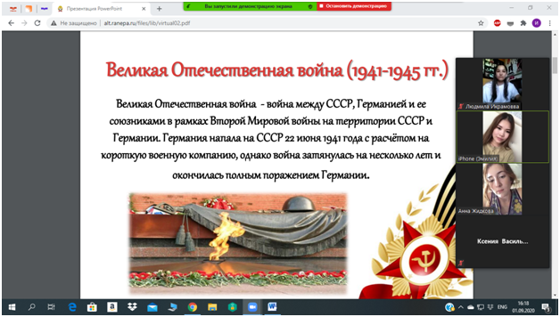 Уроки Победы прошли 1 сентября 2020 по всей стране. Вместе с куратором группы БД – 326 Даниелян И.В. студенты группы почтили память павших бойцов, вспомнили основные этапы войны, рассказали о жизни близких людей в военное время.