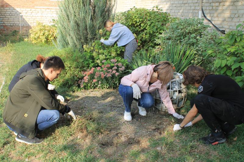 Студенты, обучающиеся по специальности «Садово-парковое и ландшафтное строительство» под руководством преподавателя Кушнир А.В. произвели благоустройство прилегающей территории у главного входа в колледж, высадили декоративные растения, осуществили санитарную обработку и сезонную подкормку существующей растительности. Согласно разработанному студентами проекту, оформили клумбу с применением современных методов ландшафтного искусства, установили габион и отсыпку из мраморной крошки, что придает особую декоративность проектируемому участку. Ребята смогли непосредственно на практике применить теоретические знания, полученные на занятиях.