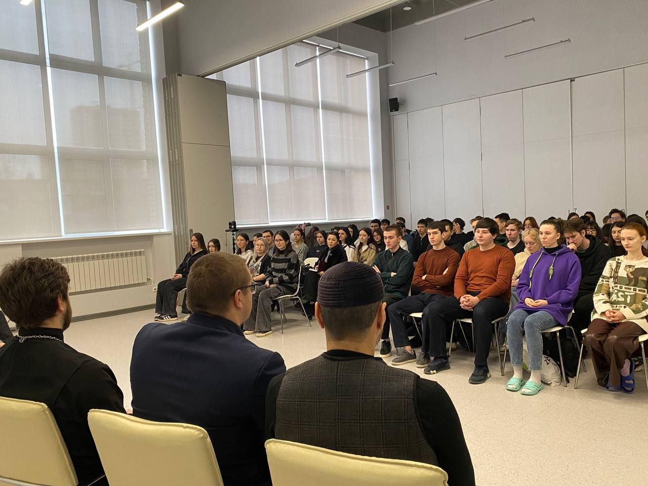Студенты проявили большой интерес к обсуждаемым вопросам и активно участвовали в дискуссии, предлагая свои проекты и инициативы, направленные на укрепление межрелигиозного и межнационального мира в регионе. Особое внимание было уделено роли молодежи в формировании позитивного имиджа Астраханской области как территории согласия и взаимоуважения.