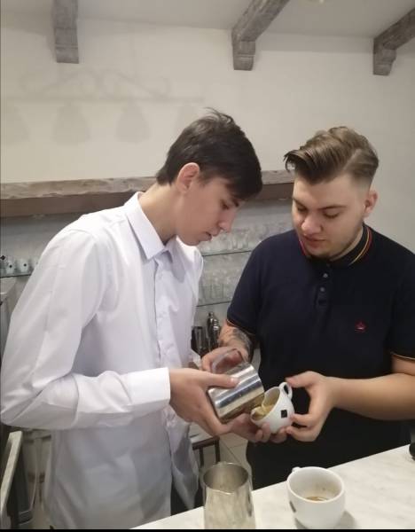 А так же под руководством профессионального бариста, выпускника нашего колледжа Федорова Андрея студенты смогли приготовить капучино, эспрессо, латте, латте-макиато, гляссе.