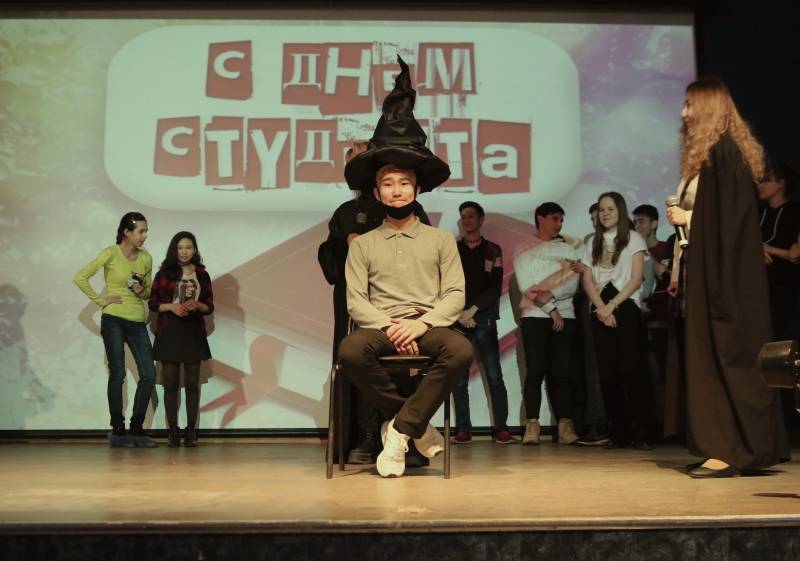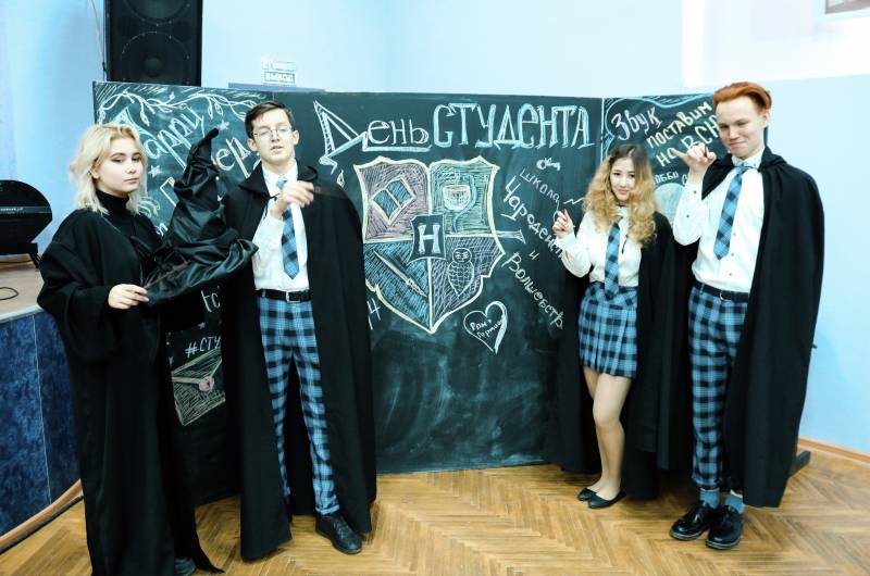 Экскурсию в школу волшебства проводили любимые герои из книг Гарри Поттера: Рон Уизли, Гермиона Грейнджер ну и, конечно, сам Гарри Поттер. Фантастическая тройка подготовила испытания для смелых и отважных студентов, научила заклинанию левитации, поведала об истории праздника, танцевали, пели , веселились так, как следует в праздничный День Студента. А самых смелых распределяющая шляпа зачислила на факультеты Хогвартса.