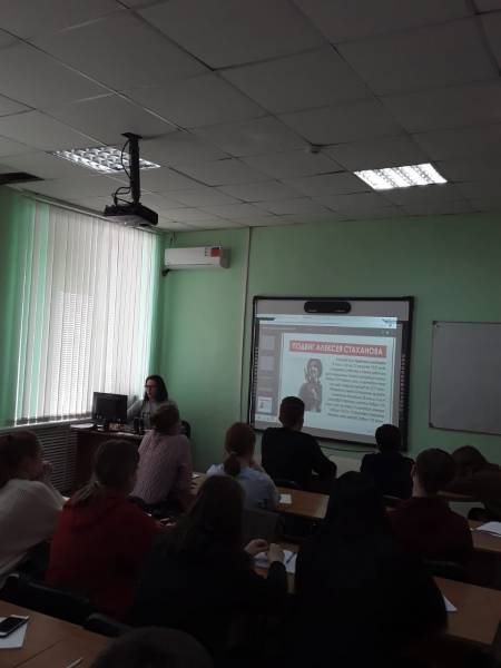 В ходе тематического кураторского часа на тему: «Трудом прославлявшие Родину» студенты узнали, кто мог стать в Советской России Героем Труда, познакомились с трудовым подвигом простого шахтера Алексея Стаханова, который поставил рекорд по добыче угля, благодаря внедрению новых технологий. Воодушевленные его подвигом шахтеры продолжили его дело, и так появилось Стахановское движение.