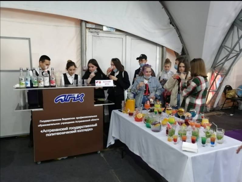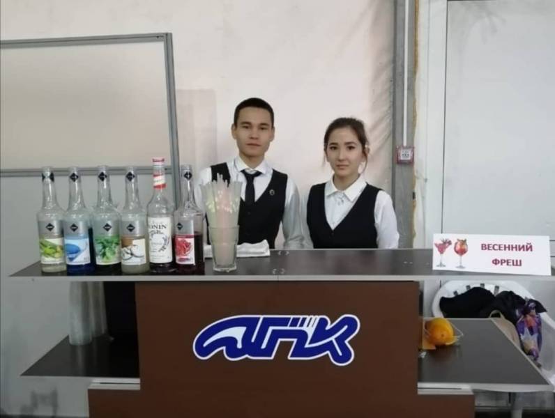 Студенты Мухин С. и Галиева М. провели мастер-класс для школьников по приготовлению разнообразных безалкогольных освежающих коктейлей, а также представили яркую выставку самых актуальных, весенних коктейлей.