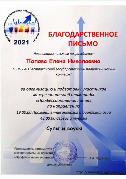 Поздравляем и благодарим Попову Елену Николаевну за подготовку участников олимпиады и желаем дальнейших побед!