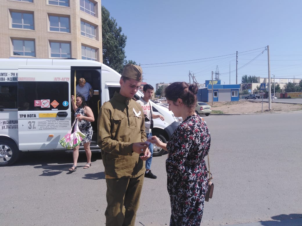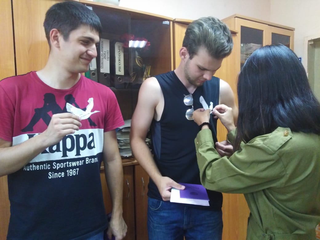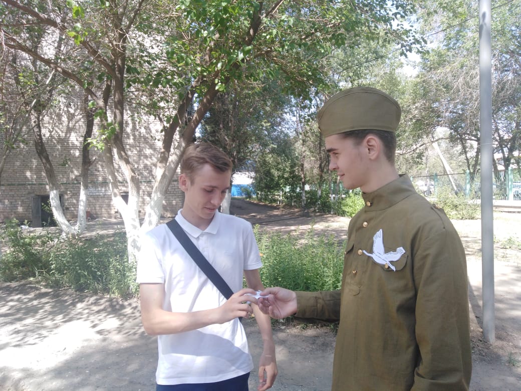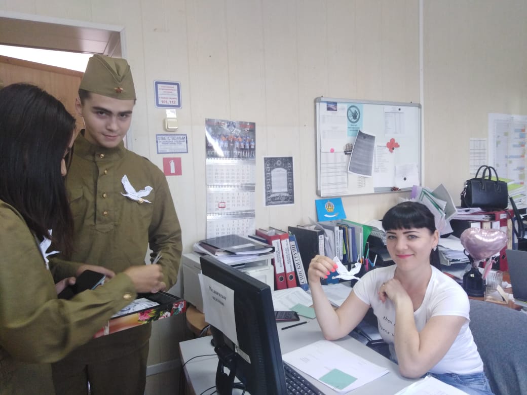 Студенты-дизайнеры изготовили символ Акции – белых журавлей, а волонтеры в военной форме подарили их всем желающим.