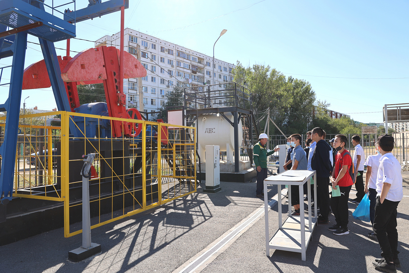 Преподаватель Владимир Михайлович Шевченко объяснил школьникам, как обслуживаются автоматизированная групповая замерная установка и скважина, эксплуатируемая установкой штангового глубинного насоса.