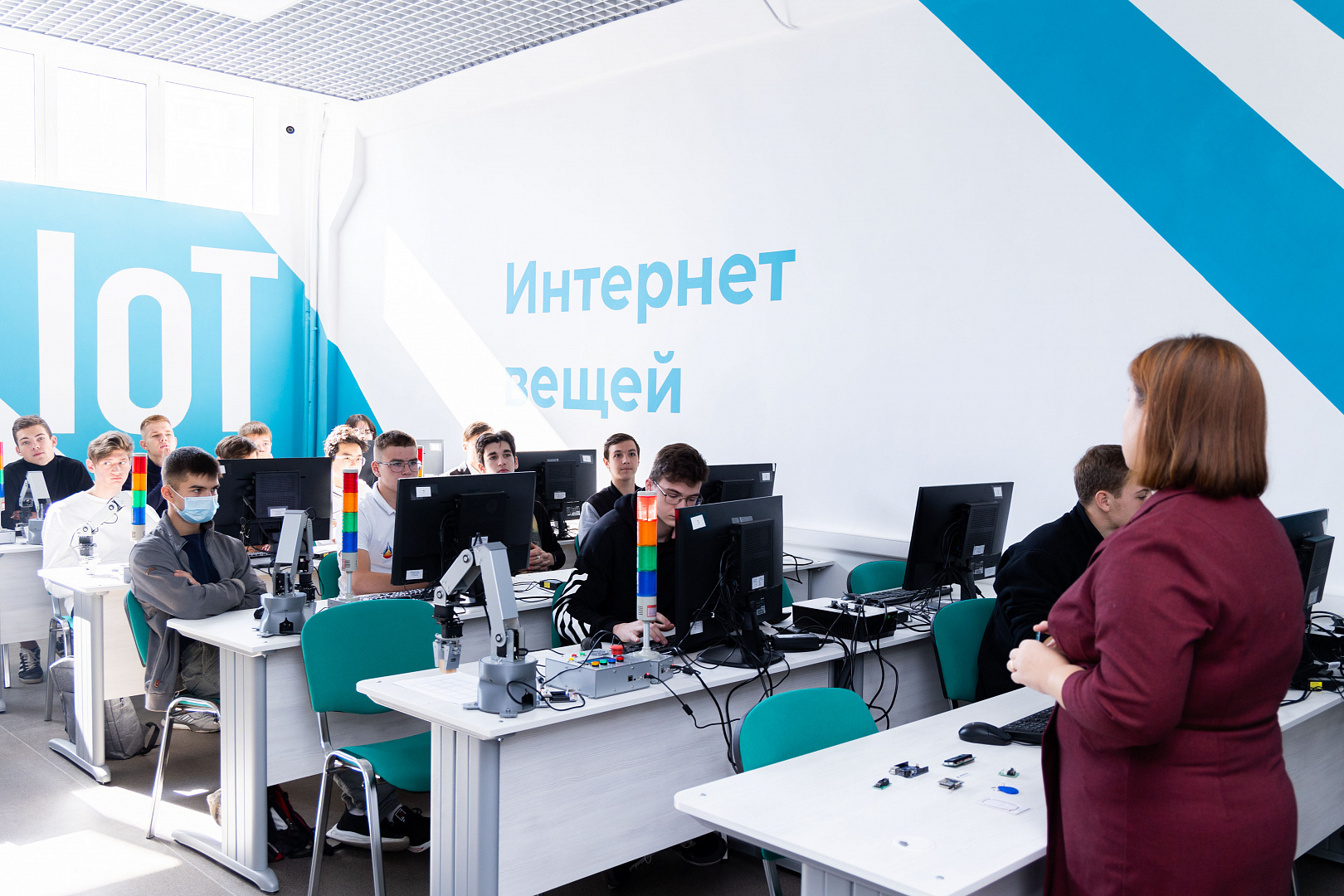 Мастерская «Мехатроника» охватывает сразу несколько отраслей. Это и ТЭК, и сельское хозяйство, и обрабатывающая промышленность. Оборудование мастерской позволяет не только изучать структуры и кинематики мехатронных систем и роботов, но и создавать такие системы, проводить их модернизацию.