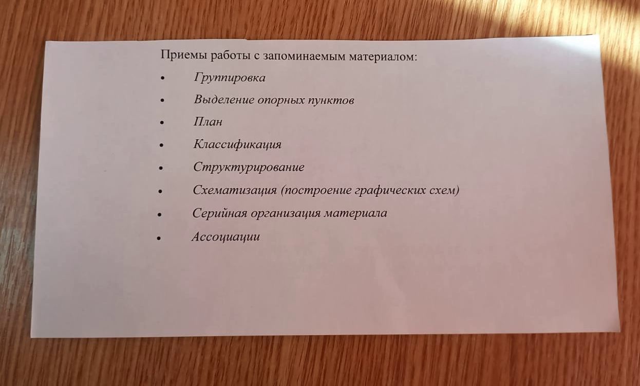 Данные техники помогут первокурсникам более полно и качественно запоминать теоретический и практический материал, а также правильно его преподнести экзаменатору.
