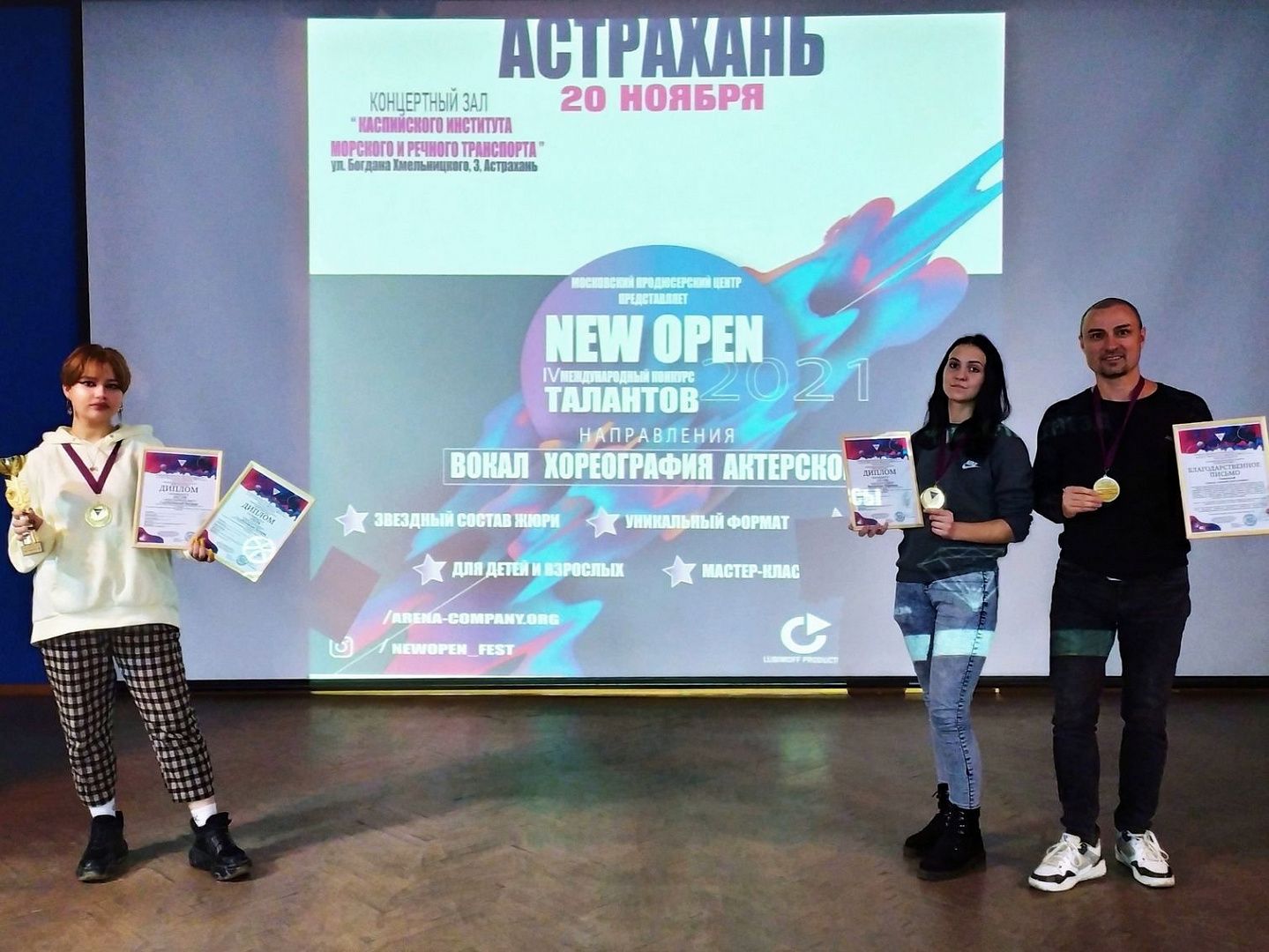 20 ноября в концертном зале Каспийского института морского и речного транспорта прошёл Международный конкурс талантов «New Open 2021». Его организатором выступает Московский продюсерский центр «Event Arena Moscow» при поддержке общественных деятелей культуры, артистов эстрады, организаторов крупных городских культурно-массовых мероприятий.