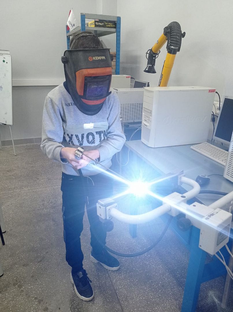 В рамках профориентационного занятия ребята узнали историю возникновения сварочного дела, а также познакомились с оборудованием сварочной мастерской. Кроме того, после прохождения инструктажа по технике безопасности первокурсники попробовали поработать на тренажёрах имитации сварочных процессов «МДТС-05».