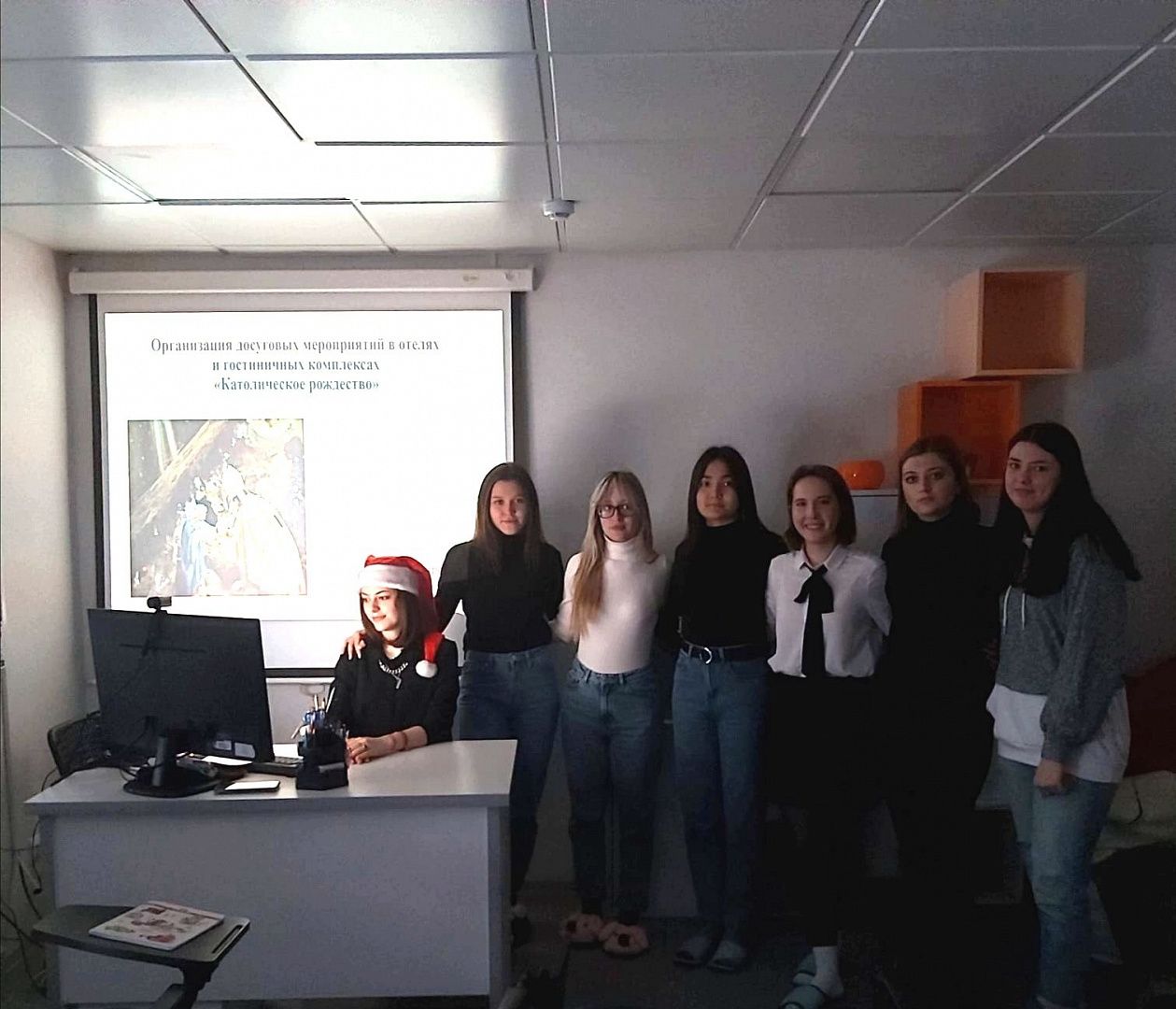 В преддверии католического Рождества в группе 416 специальности «Гостиничное дело» прошёл открытый урок по дисциплине «Немецкий язык» на тему «Организация досуговых мероприятий в отеле. Католическое Рождество» (преподаватель Н.А.Глазкова).